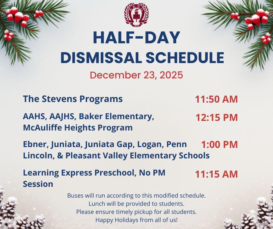 Student Half-Day Dismissal Schedule - December 23, 2025